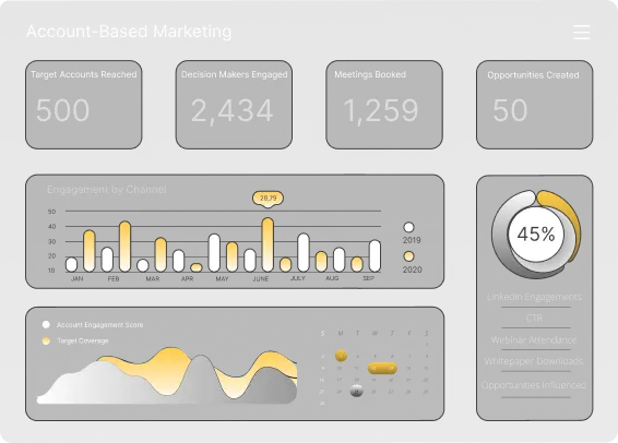 With ABM Campaigns service, we target the high-value accounts that matter. We target high-value accounts with hyper-personalized messaging and engagement strategies. Our Account-Based Marketing (ABM) campaigns are designed to help you own every stage of the buying journey, build stronger relationships with key accounts, and boost conversion rates. We maximize ROI by turning interest into influence and influence into revenue.